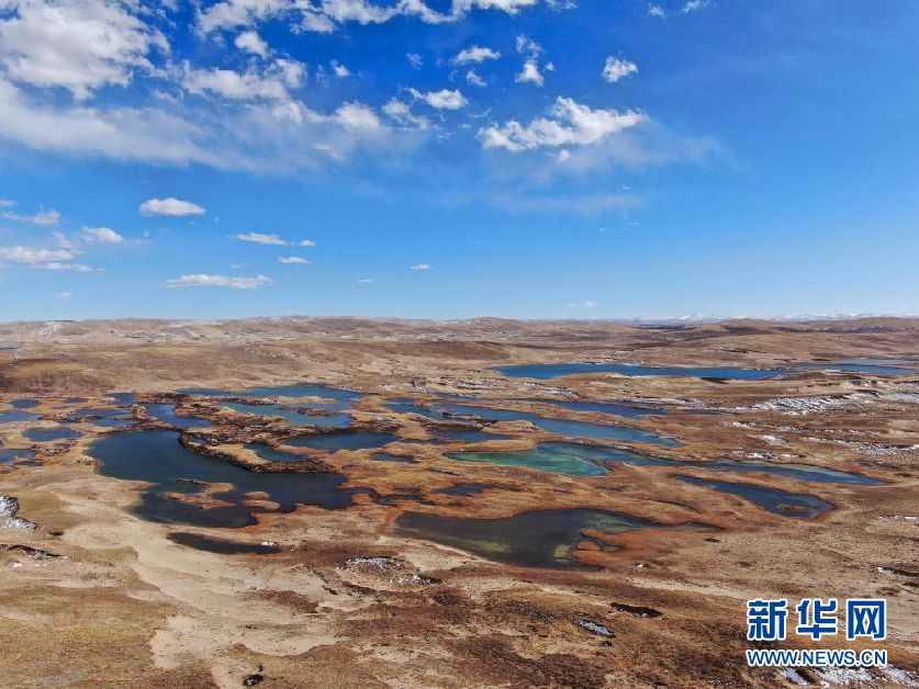 這是10月30日在青海省果洛藏族自治州瑪多縣境內拍攝的一處濕地(無人機照片)。新華社記者 張龍 攝