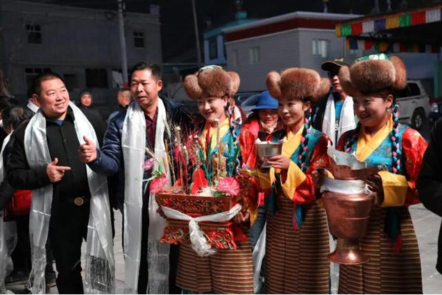首發(fā)團(tuán)一到達(dá)歡迎儀式現(xiàn)場(chǎng),藏族同胞便端出裝滿糌粑、寓意圓滿如意的切瑪盒迎接游客,大家一起為游客獻(xiàn)上潔白的哈達(dá),并送上真摯的祝?!霸鞯吕铡?。扎西雪巴藏戲跳起來,青稞酒喝起來,山南人民的熱情好客讓現(xiàn)場(chǎng)所有游客驚喜連連,感受到了滿滿儀式感。