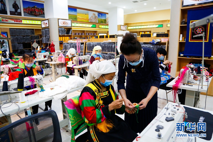 在青海省海東市互助土族自治縣青繡園扶貧車間里,工作人員正在刺繡。(資料圖)新華網(wǎng)發(fā)(牟泉攝)
