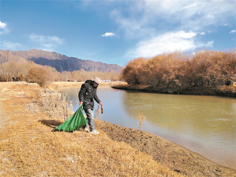 近日,記者在林周縣江熱夏鄉(xiāng)澎波河邊看到,部分村民正在清理河道垃圾。記者采訪得知,為保護(hù)生態(tài)環(huán)境,經(jīng)過鎮(zhèn)鄉(xiāng)兩級(jí)遴選審定,他們成為了河道管護(hù)員,主要負(fù)責(zé)轄區(qū)河道管護(hù)。