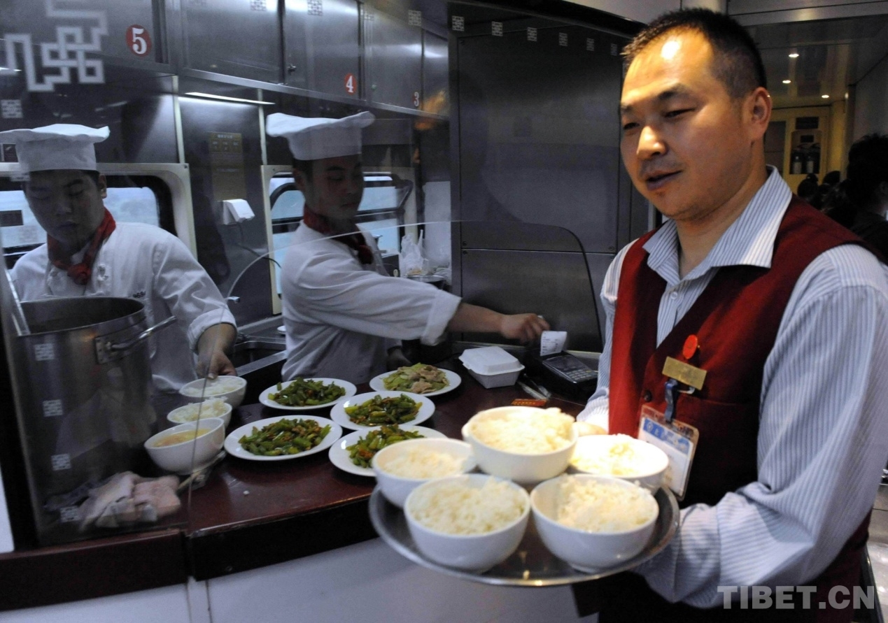 這趟列車的廚師長(zhǎng)孫冠軍告訴記者,京藏列車自開通運(yùn)營(yíng)以來,除了像西紅柿炒雞蛋因藏北高原沸點(diǎn)低而無法炒成片外,其他三四十種可口飯菜都能在列車運(yùn)行中的高海拔地段完成。