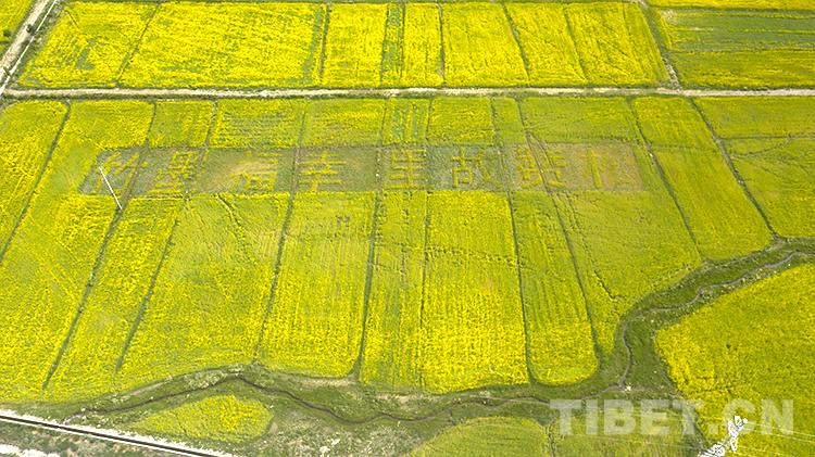 值得一提的是,在扎西崗鄉(xiāng)主會(huì)場(chǎng),當(dāng)?shù)貙⒒牡刂匦麻_(kāi)墾,安排種植了油菜花大地景觀。不同品種、不同顏色的油菜花海為背景的種植,從空中俯瞰形成了“喜迎二十大”“松贊故里 幸福墨竹”字樣和松贊干布、文成公主、哈達(dá)、愛(ài)心等圖樣,表達(dá)當(dāng)?shù)厝罕娤灿h的二十大的美好祝福。