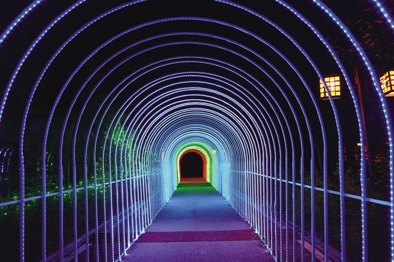 象雄美朵首屆國潮光影秀分為星際迷航、迷霧森林、遇見·螢火之光、激情北極光、時光隧道五個板塊。隨著彩燈亮起,星辰、太空人、火箭、綠森林、花海、孔雀等景觀清晰地展現(xiàn)在大家面前,通過藝術(shù)與科技巧妙地結(jié)合,立體呈現(xiàn)各種自然場景。