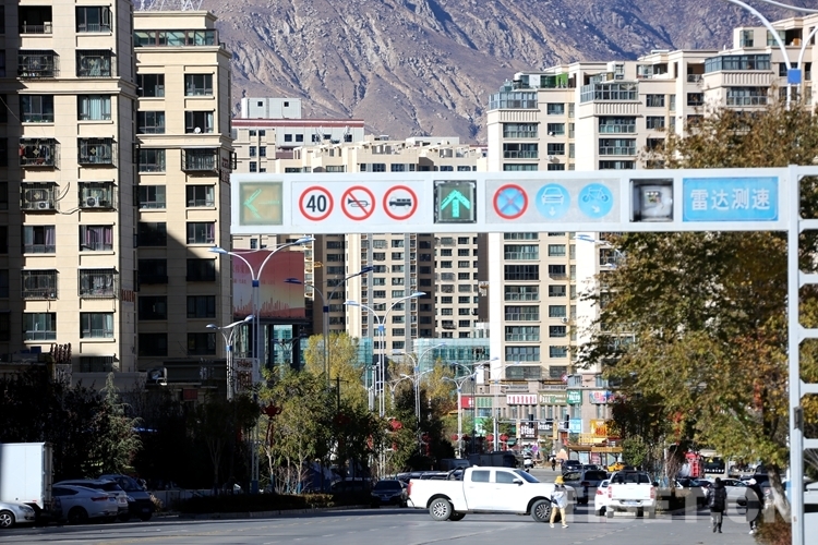 圖為拉薩市柳梧新區(qū)北京大道上有不少步行或駕車外出的居民群眾 攝影:王佳豪