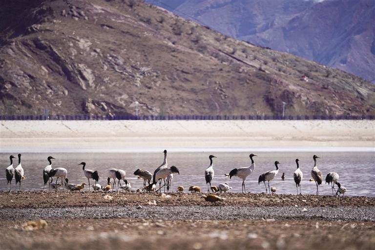 黑頸鶴是國家一級(jí)保護(hù)動(dòng)物,在藏語中稱為“沖沖”。主要棲息在海拔2500米至5000米的高原、草甸、沼澤地帶。拉薩北部的林周縣平均海拔約4200米,是黑頸鶴的主要越冬地之一。最近這段時(shí)間,對拉薩市林周縣野保員們來說,一邊要忙自家的農(nóng)活,一邊還要巡查候鳥情況?!耙呀?jīng)有一小部分飛走了,估計(jì)再過半個(gè)月都會(huì)陸續(xù)飛走。”3月23日上午,野保員旦增告訴記者,在虎頭山水庫和卡孜水庫越冬的候鳥有一部分已經(jīng)飛走了。野保員口中的“飛走”便是遷徙,遷徙是候鳥的本能,一年一年,跟隨時(shí)間的召喚,完成兩次遷徙:繁殖和越冬。
