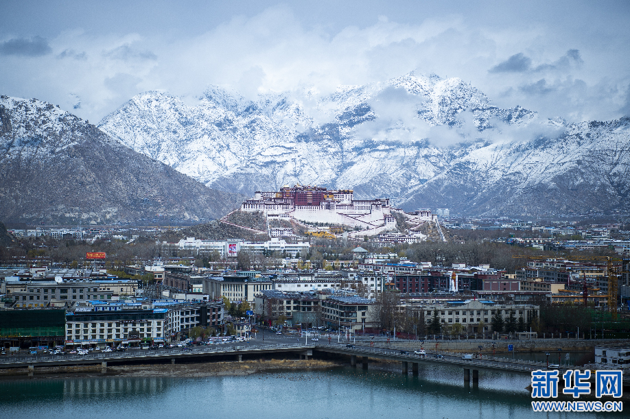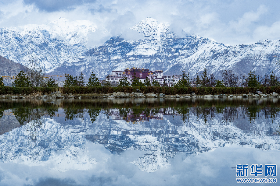 3月30日,在拉薩市南山公園拍攝的雪后布達(dá)拉宮。新華網(wǎng) 柑丹鴦琦攝