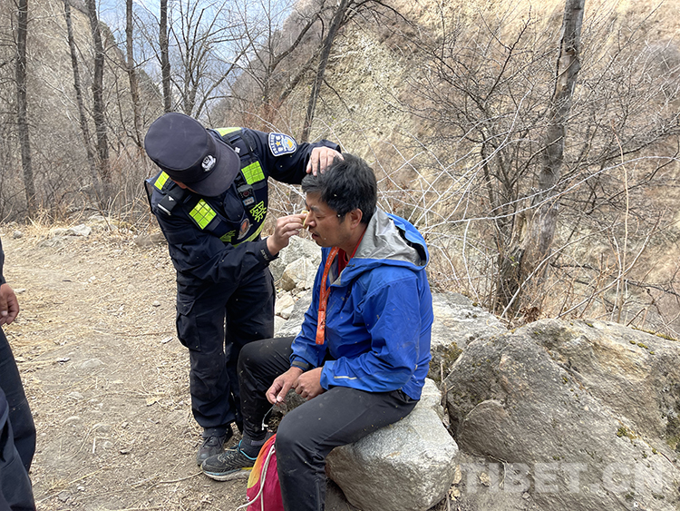 圖為派邊境派出所民警找到走失游客并為其處理傷口
