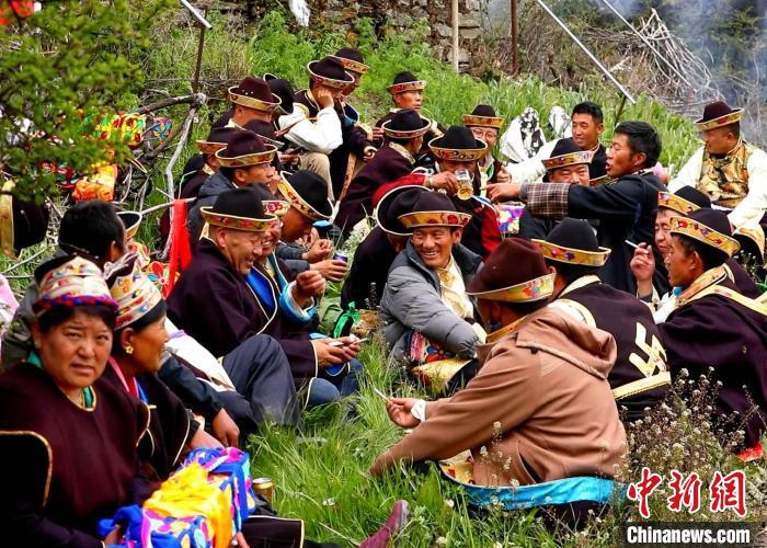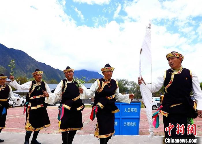 米林村處處生機盎然,有盛開的桃花、油菜花、綠色的麥田,山林間不時傳來的鳥鳴聲,似乎都是在一起祈禱今年的豐收。村民們身上還背有經(jīng)文,圍繞全村田園轉上一圈,轉到每一塊農(nóng)田前都要煨桑祈福豐收,舉行祭祀活動。祭祀活動后,能歌善舞的婦女們總是要高歌起舞,以此來表達自己喜悅的心情。