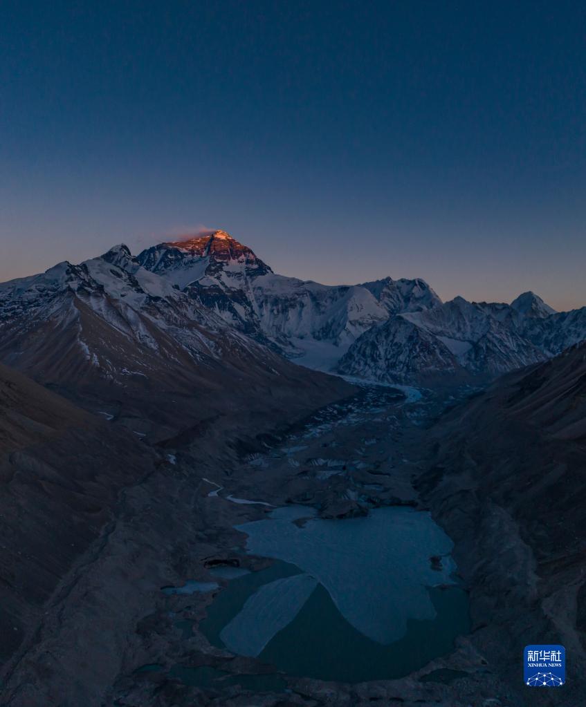 這是在海拔5700米左右空中拍攝的珠穆朗瑪峰(5月11日攝,無人機(jī)照片)。新華社記者 孫非 攝