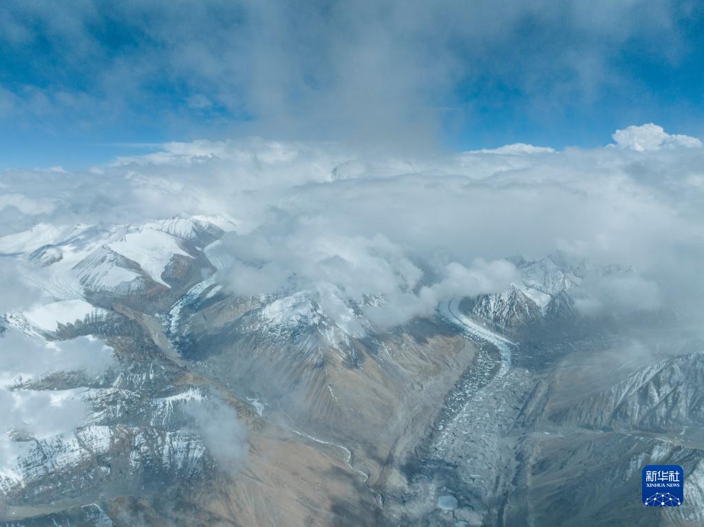 這是在海拔6000米左右高空拍攝的喜馬拉雅山脈群山(5月26日攝,無人機(jī)照片)。新華社記者 孫非 攝
