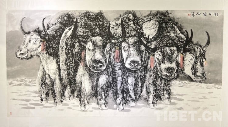 汪仕民介紹,此次《牦牛志·水墨西藏》個人作品展上,除了水墨作品外,還特地安排了一部分去年疫情封控期間的牦牛畫作和系列風(fēng)景作品配合這次的展出,希望特殊時期的作品與這次牦牛水墨系列作品能給拉薩市民帶來一份愜意,和饕鬄般美的享受盛宴?!拔乙蚕Mㄟ^這次兩百余幅畫作的展出,陶冶豐富拉薩的情操與文化生活,也為西藏文化藝術(shù)發(fā)展盡一份綿力?!蓖羰嗣裾f。