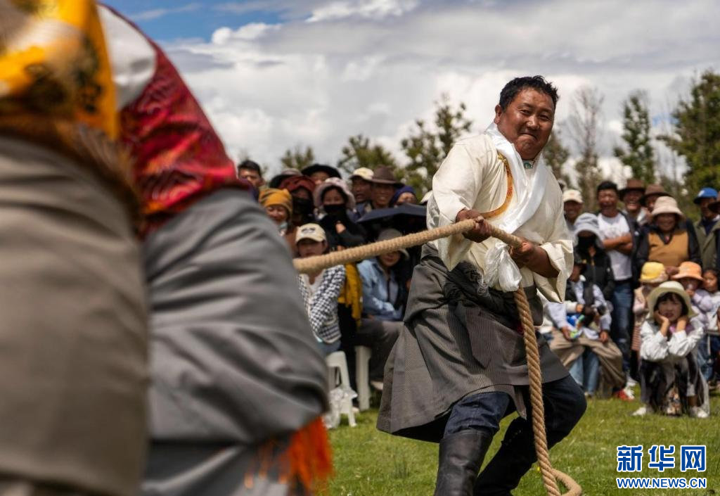 圖為達(dá)孜“望果節(jié)”拔河比賽現(xiàn)場(chǎng)(7月28日攝)。新華網(wǎng)發(fā) 李騰 攝