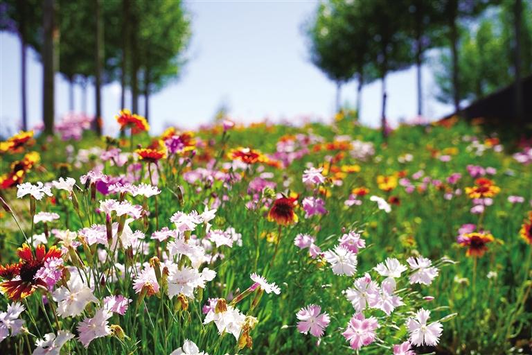 六月的拉薩,陽(yáng)光正好。澄澈藍(lán)天如洗,高遠(yuǎn)而明亮。柳梧大橋下的濱河公園,河畔草地鋪滿各色小花,紅的明艷、粉的柔和、紫的淡雅,肆意綻放在綠意間,仿佛步入印象派大師莫奈的畫布之中。成片盛開的各類花卉爭(zhēng)奇斗艷,五彩斑斕的花朵沿著河畔鋪展開來(lái),形成一片片絢麗的花海。不同顏色的花朵相互交織,隨風(fēng)搖曳,與藍(lán)天白云、碧綠的河水、遠(yuǎn)處綠意盎然的南山相映成趣,構(gòu)成了一幅花海畫卷。