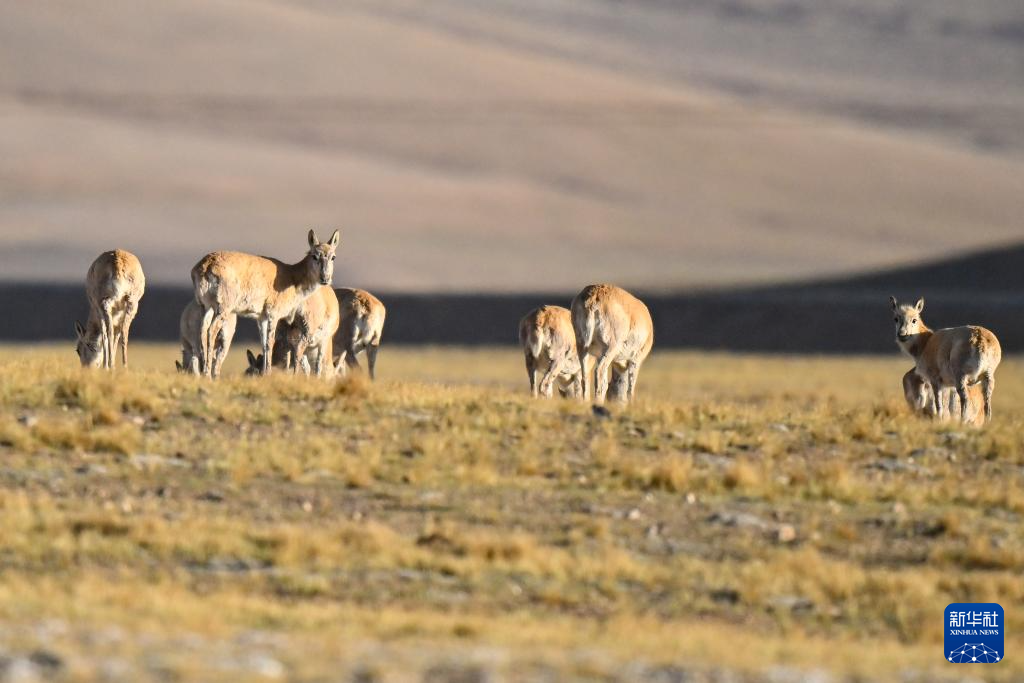 在羌塘國(guó)家級(jí)自然保護(hù)區(qū)核心區(qū)拍攝到的雌性藏羚羊群(6月10日攝)。新華社記者 旦增尼瑪曲珠 攝 ??