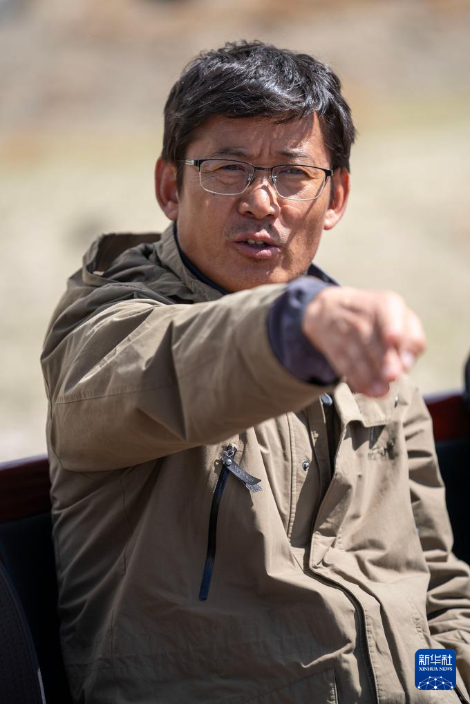 5月22日,聯(lián)合考古隊(duì)領(lǐng)隊(duì)夏格旺堆在瑪不錯(cuò)遺址向記者介紹考古發(fā)掘情況。新華社記者 旦增尼瑪曲珠 攝 ??