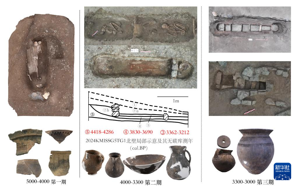 這是瑪不錯(cuò)遺址各期典型墓葬和陶器特征。新華社發(fā)(西藏自治區(qū)文物保護(hù)研究所供圖) ??