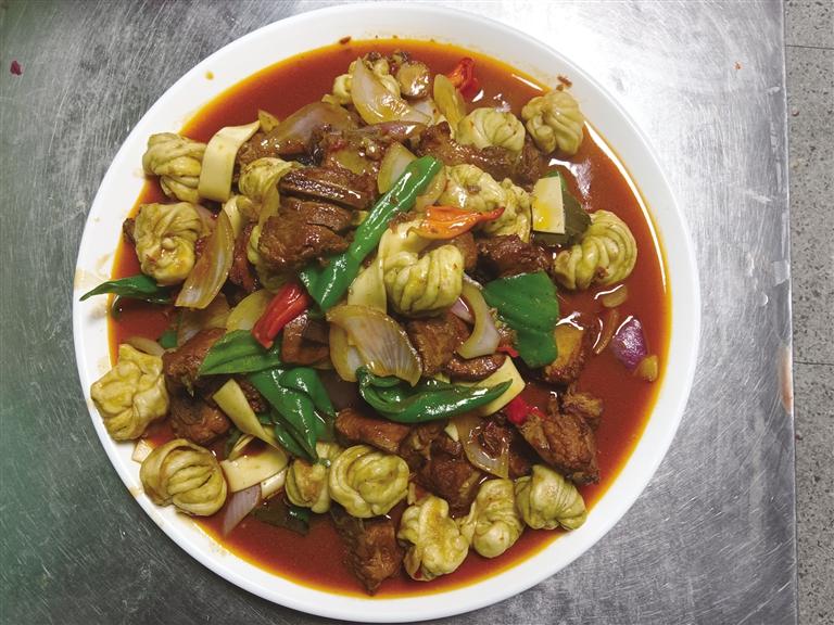 店內(nèi)生意紅火,但背后的辛苦只有王林生自己知道?!拔渫媸持v究純手工,面團(tuán)得反復(fù)揉搓,做出來的面條才筋道爽滑。剛開始學(xué)揉面,胳膊酸得抬不起來,做出來的面也不對(duì)味?!蓖趿稚f,印象深刻的是,第一次在高原煮面條,面好像怎么也煮不透。后來,他才明白高原的水只燒到八十多度就開了,煮面要用高壓鍋。他不放棄,一遍遍地調(diào)整揉面的力道和醒發(fā)的時(shí)間,反復(fù)試驗(yàn)煮面的火候,甚至不惜成本從老家運(yùn)面粉過來。終于,那一碗正宗的“涼州大寬”從鍋中撈出,澆上自家熬制的濃香四溢的牛肉臊子,潑上一勺滾燙的辣油,撒上翠綠的香菜、蒜苗。這口扎實(shí)熱乎的武威風(fēng)味,竟成了不少高原異鄉(xiāng)人舌尖上的撫慰。
