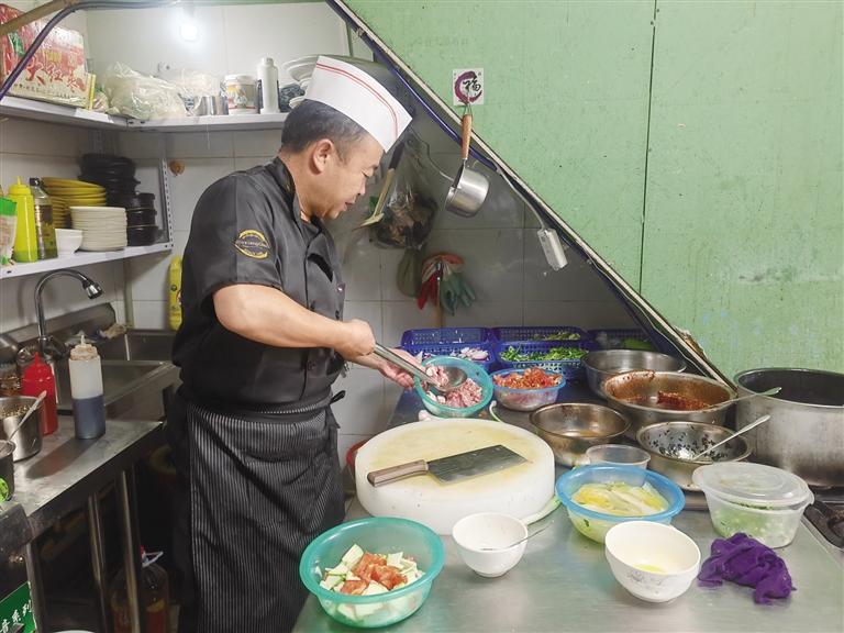 在事業(yè)發(fā)展過程中,王林生深知不斷學(xué)習(xí)的重要性。只有不斷學(xué)習(xí),才能取得進(jìn)步。一有空,他就和同行們交流新菜品、新創(chuàng)意,分享彼此的經(jīng)驗(yàn)和心得。晚上,等孩子們睡了,王林生也會(huì)坐在電腦前自學(xué)經(jīng)營(yíng)管理課程?!白霾惋嬀偷貌粩嗾垓v,不能原地踏步?!彼χf。