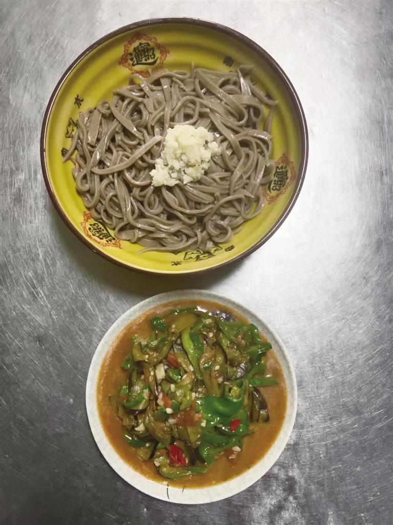 走進(jìn)麥香面莊,幾位客人熱烈地談?wù)撝ぷ骱蜕?,言語(yǔ)間滿是熱情。老板娘笑容滿面地招呼著客人。廚房?jī)?nèi),王林生則套著圍裙,燒水、下面、澆湯、加菜,動(dòng)作麻利得像練過千百遍。