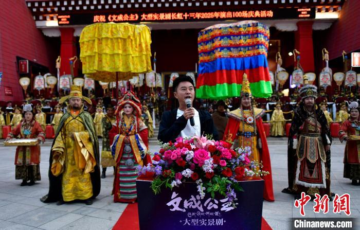 圖為《文成公主》大型實(shí)景劇第十三季演出100場(chǎng)慶典活動(dòng)現(xiàn)場(chǎng)。李林 攝