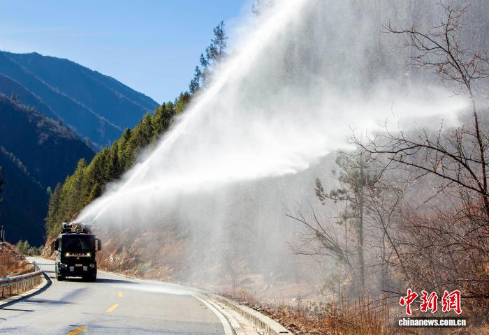 圖為西藏亞東出入境邊防檢查站開展灑水增濕現(xiàn)場。李錦輝 攝