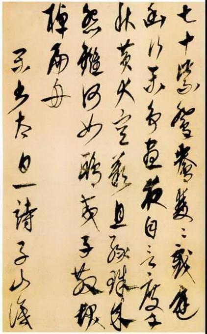 其草書豎幅《李白古風(fēng)詩卷》,縱35.0cm,橫63.8cm,現(xiàn)藏日本東京國立博物館。書風(fēng)勁健清新,善以懸腕作書,行筆爽利干脆,結(jié)體縱長,流暢而不浮滑,但是往往在最后一筆用力一挑或一頓,難免顯得有些刻露。在當(dāng)時世趨趙孟頫書風(fēng)的情況下,能走出自己的道路,作為杰出的少數(shù)民族書法家特立于書壇。