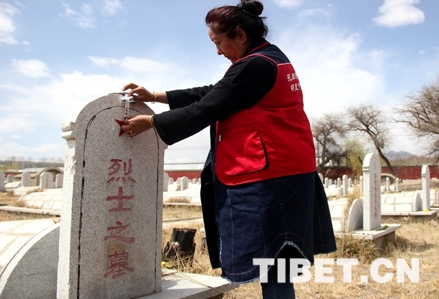 在肅穆寧靜的拉薩烈士陵園內(nèi)也有很多不知不知已在此長眠了多少年的無名烈士。讓人欣慰的是,每年清明時節(jié)都有人來為他們進行祭掃。扎西新村社區(qū)副主任張艷說:“扎西新村社區(qū)的志愿者們每年都會自發(fā)前來為陵園內(nèi)的無名烈士們祭掃,讓無名英雄們不孤單?!保ㄖ袊鞑鼐W(wǎng) 圖、文/賈華加)