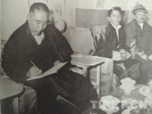 圖為十世班禪在拉薩聽(tīng)取群眾意見(jiàn)并記錄。圖片翻拍自《西藏文史資料選輯》