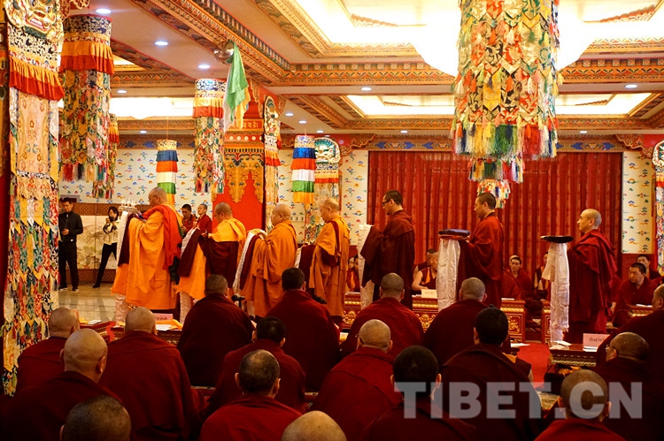 法會禮請全國政協(xié)常委、中國佛教協(xié)會副會長班禪額爾德尼o確吉杰布拈香主法,中國藏語系高級佛學院領導、經(jīng)師、學員及宗教界教職員工約130人參加法會。