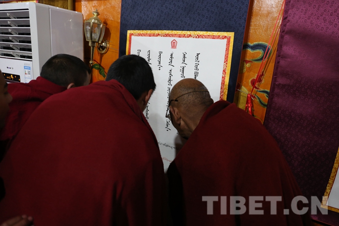 此次活動(dòng)共征集書法作品80余幅,包含藏文、梵文、漢文、英文,其中藏文書法當(dāng)中又有烏金和烏梅體、草書體和古藏文體等多種書法類型,不僅展現(xiàn)了藏文書法精美多樣的字體和悠久歷史,而且表達(dá)了全寺僧眾深切緬懷大師的至真感情和銘記大師教誨,積極發(fā)揚(yáng)藏傳佛教愛(ài)國(guó)愛(ài)教優(yōu)良傳統(tǒng)的堅(jiān)定信心。(中國(guó)西藏網(wǎng) 記者/索朗加措、趙耀 圖片由扎什倫布寺寺管會(huì)提供)