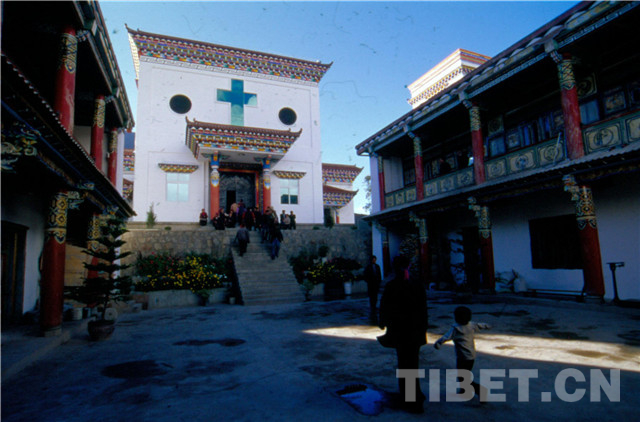 這樣一個多民族多戰(zhàn)爭的地方,自然會有許多矛盾,但日子長了,也會發(fā)生許多的融合。宗教可以沒有國界,民族也可以忽略屬性——上鹽井村藏族阿妮成了上帝的子民,而下鹽井村的納西人次仁白珍則做了佛主的信徒。