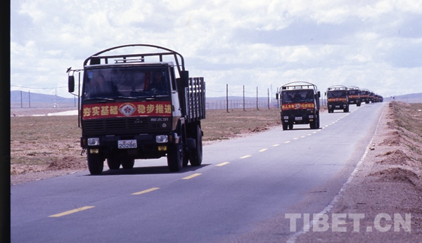 圖為青藏公路上的車隊。