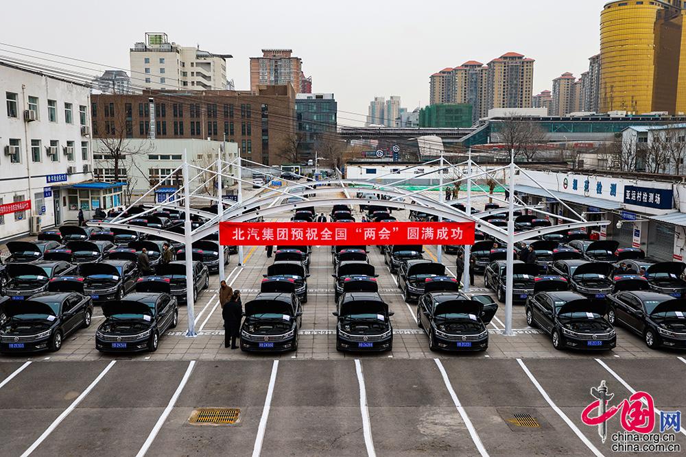 2021年全國“兩會”期間,北汽出租汽車集團共計上會車輛469部,其中新進購置宇通T7及新金龍、新宇通大客車、吉利汽車等大小車輛90部。中國網(wǎng)記者 鄭亮攝