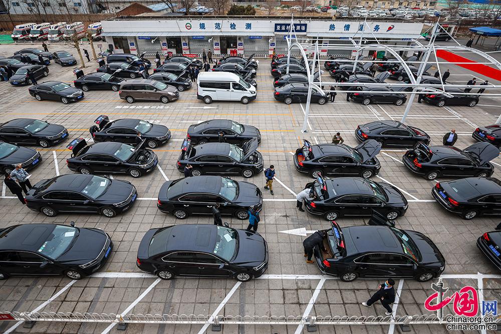 2月21日,北京市交管部門在位于大屯的亞運村機動車檢測場,對北汽出租汽車集團準備為2021年全國“兩會”服務(wù)的車輛逐一進行“全面體檢“。 中國網(wǎng)記者 鄭亮攝