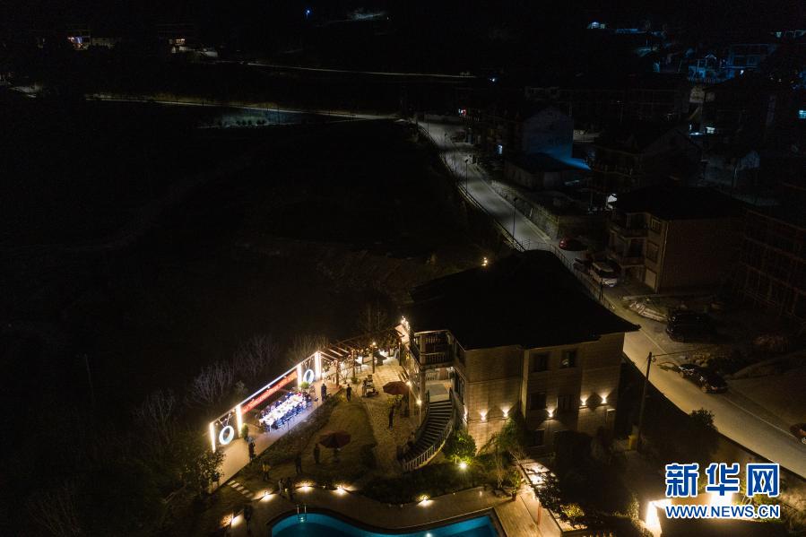 2月22日,桐廬縣鐘山鄉(xiāng)鄉(xiāng)賢代表、民宿業(yè)主代表、桐廬縣鄉(xiāng)兩級人大代表以及黨員和村民代表在鐘山鄉(xiāng)參加“新村夜話”討論活動(dòng)(無人機(jī)照片)。新華社記者 徐昱 攝