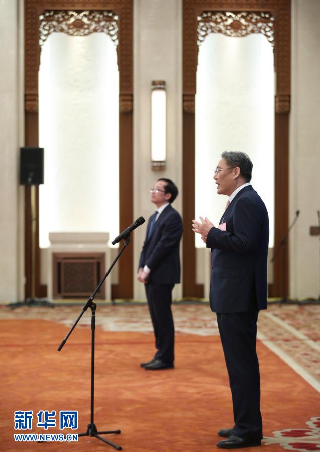 3月8日,第十三屆全國人民代表大會第四次會議舉行第二場“部長通道”采訪活動(dòng)。這是科學(xué)技術(shù)部部長王志剛(右)通過網(wǎng)絡(luò)視頻方式接受采訪。