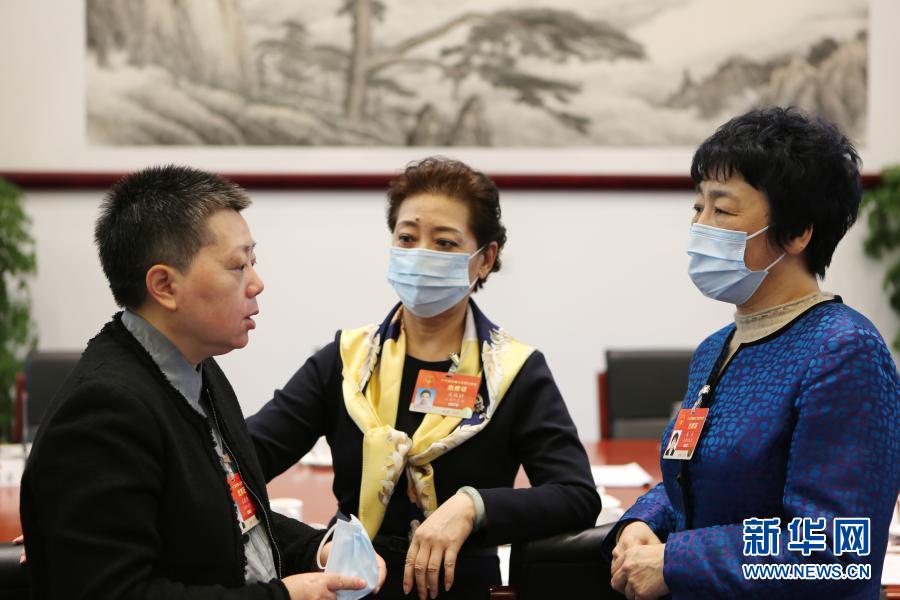 3月6日,十三屆全國人大四次會(huì)議天津代表團(tuán)的孔曉艷代表(左)、關(guān)牧村代表(中)和馬杰代表在會(huì)議間隙交流討論。新華社記者 吳雨 攝