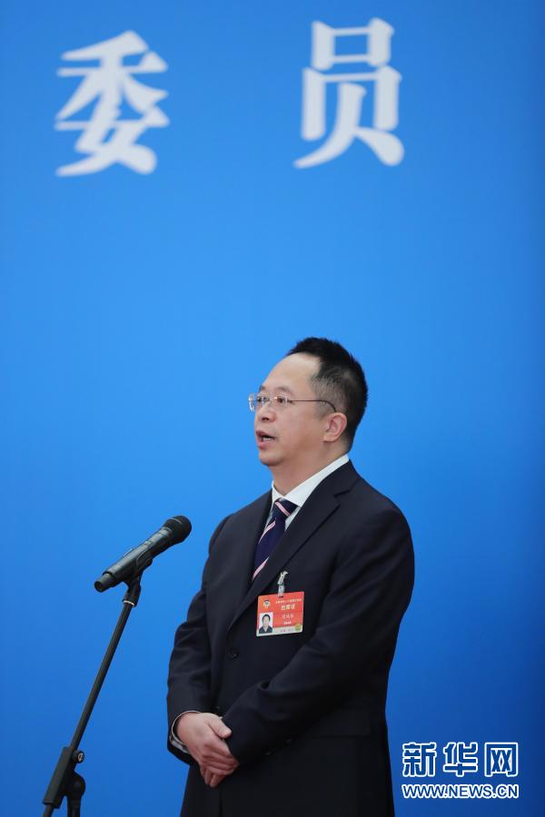 3月4日,全國政協(xié)十三屆四次會議第一場“委員通道”采訪活動在北京人民大會堂新聞發(fā)布廳舉行。這是全國政協(xié)委員朱征夫通過網絡視頻方式接受媒體采訪。新華社記者 李賀 攝