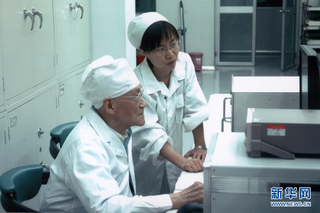 陸元九院士在航天時(shí)代電子公司激光陀螺實(shí)驗(yàn)室與同事探討問(wèn)題(2006年攝)。新華社發(fā)(中國(guó)航天科技集團(tuán)供圖)