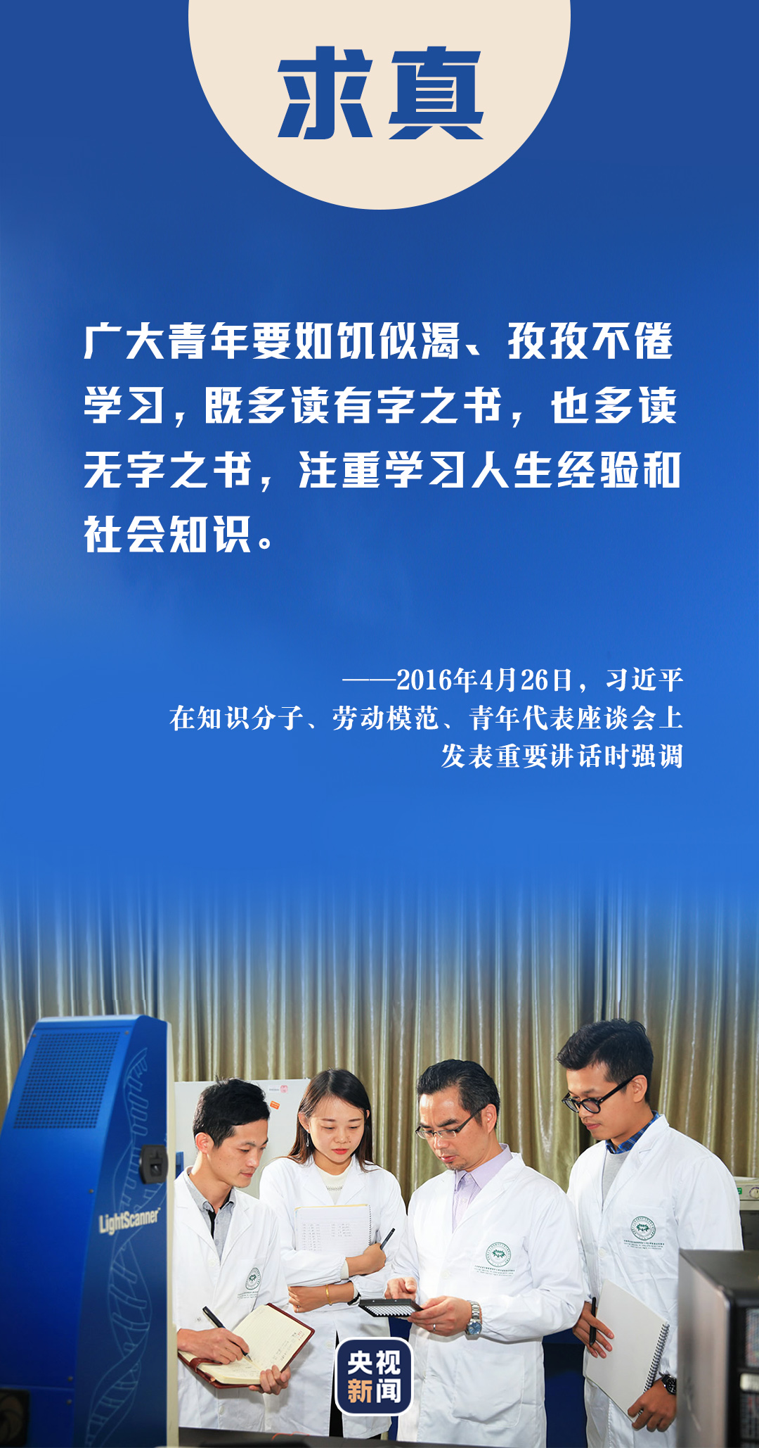 2013年五四青年節(jié),習(xí)近平總書記來到中國航天科技集團(tuán)公司中國空間技術(shù)研究院,與青年代表座談??倳浿赋?,廣大青年要堅(jiān)持面向現(xiàn)代化、面向世界、面向未來,增強(qiáng)知識更新的緊迫感,如饑似渴學(xué)習(xí),既扎實(shí)打牢基礎(chǔ)知識又及時(shí)更新知識,既刻苦鉆研理論又積極掌握技能,不斷提高與時(shí)代發(fā)展和事業(yè)要求相適應(yīng)的素質(zhì)和能力。