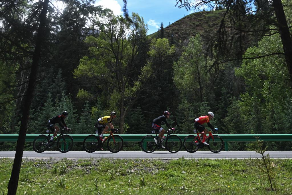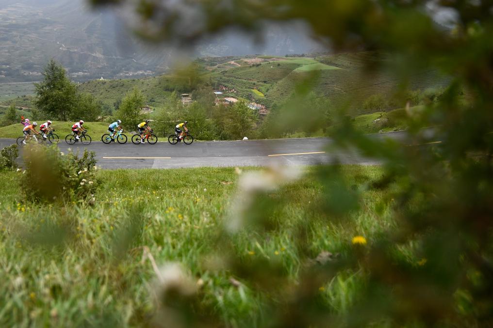 7月13日,參賽選手在比賽中騎行。新華社記者張龍攝