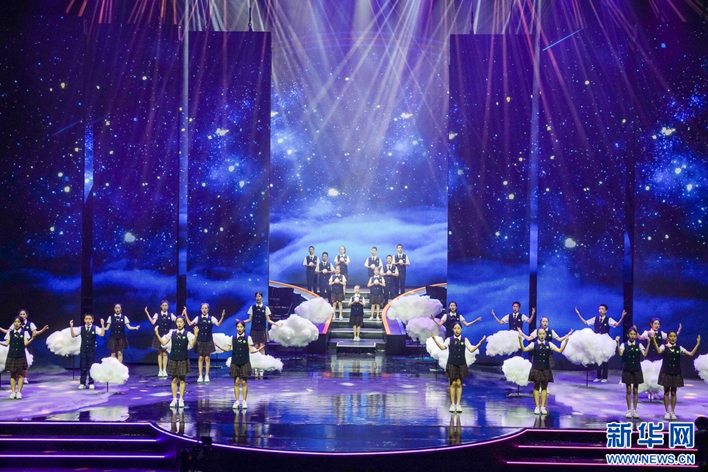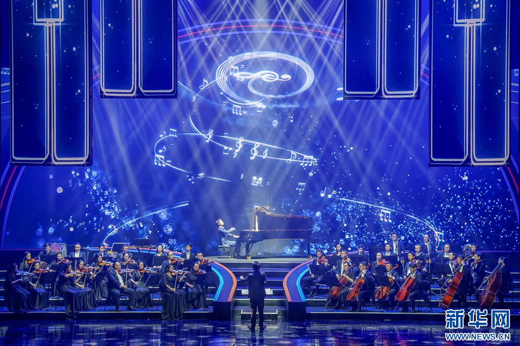 這是7月17日晚上拍攝到的晚會尾聲,交響合唱《人民至上》。新華網(wǎng) 肖和勇 攝